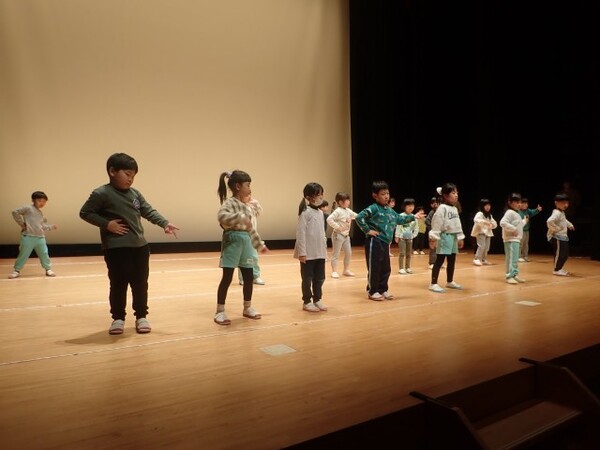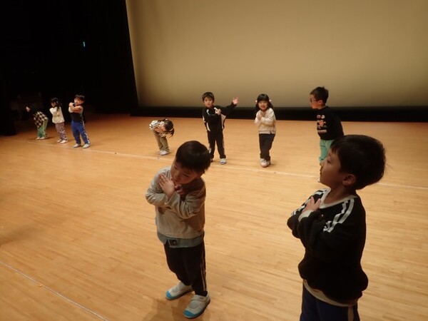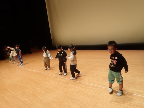 三条市体育文化会館で発表会の練習をしてきました。さくら組さんは初めての大きなステージに、ドキドキ…しながらもにっこり笑顔で楽しそうに練習していました♪