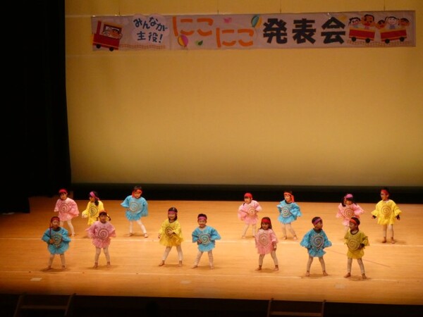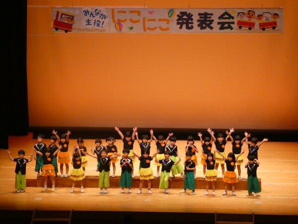 『令和7年度みんなが主役!にこにこ発表会』三条市体育文化会館のマルチオールで行われました。大きなステージで踊ったり演じたり…のびのびと表現する姿がとっても素敵でした。。こどもたちみんな、とってもよく頑張りましたね♪「楽しかった〜!」と満足そうな笑顔も見られました。温かいまなざしと大きな拍手をありがとうございました!