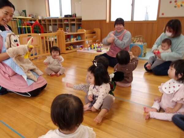 ほのぼの広場(未就園児対象)がありました。大型の布絵本をみんなで楽しみました♪