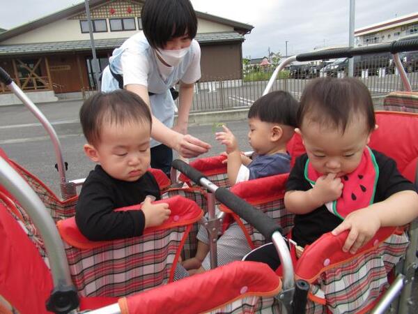 ふじの木保育園に“交通戦隊★アンゼンジャー”が来てくれました!「みんな、交通安全指導で習ったことを覚えているかな?」「道路を歩くときは、右かな?左かな?」とアンゼンジャーから問いかけられて、元気いっぱいに答えていました。そして最後に「この世で一番大切なものは何か分かるかな?それはね…“命”だよ!」と、とっても大切なことを教えてくれました。アンゼンジャー、ありがとう!!これからも交通ルールを守って安全に過ごしましょうね!