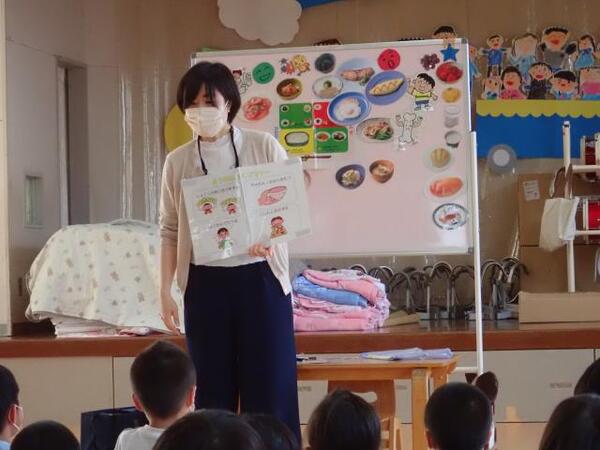 三条市食育推進室の栄養士さんより食育指導をしていただきました。箸を正しく持つためには、指先はもちろん、体全体をたくさん動かすことが大切とのことで、いろいろな遊びをしていただきました。そして、実際に一人ひとりが箸を持ってみました。給食中、「こうだったよね」と意識して持つ姿も。家庭と連携しながら、箸の正しい持ち方が身につくように見守っていきたいですね!