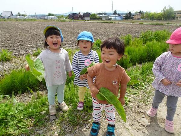 日頃からいろいろなお話に親しんでいます。絵本や紙芝居の読み聞かせも大好きな子どもたち。今日は、“おおきなかぶ”のお話ごっこを楽しみました。「ワンワン!!」と役になりきる子、「うんとこしょ!」と力いっぱい引っ張る子…最後は大きなかぶがすっぽーんと抜けて、とっても楽しそうな子どもたちでした。「次はあのお話にしよう!」と楽しみにしているようです。お友だちとイメージを共有できて、楽しかったですね♪