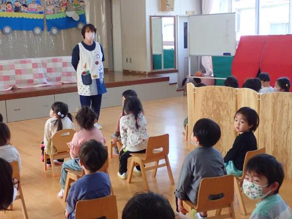 3年ぶりに、オマチマンとツマチマンがふじの木保育園にやってきました!!子どもたちも大興奮!歌遊びやパネルシアター、ミラーボールが回る演出にも大喜びでした。「オマチマン、また来てね!」「また会おうね!」楽しい思い出ができて良かったですね♪