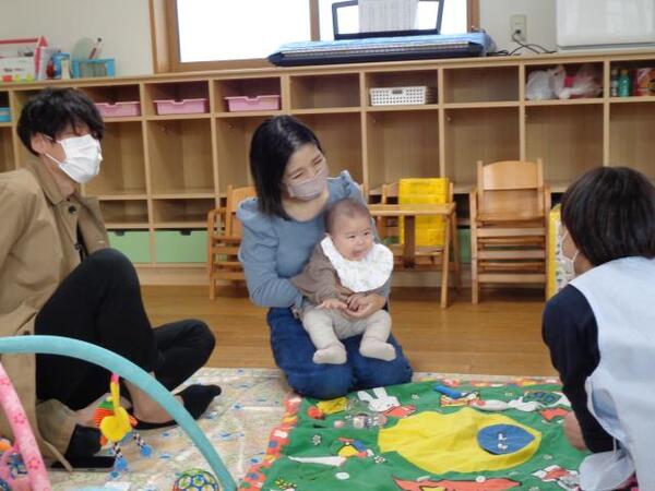 興味津々に飼育ケースをのぞき込む子どもたち。カブトムシを保育者が手にとって見せると、そ〜っと手を伸ばす姿も見られました。生き物との出会いに、表情は様々…どんな気持ちで見ていたのでしょうか?かわいい子どもたちでした♪