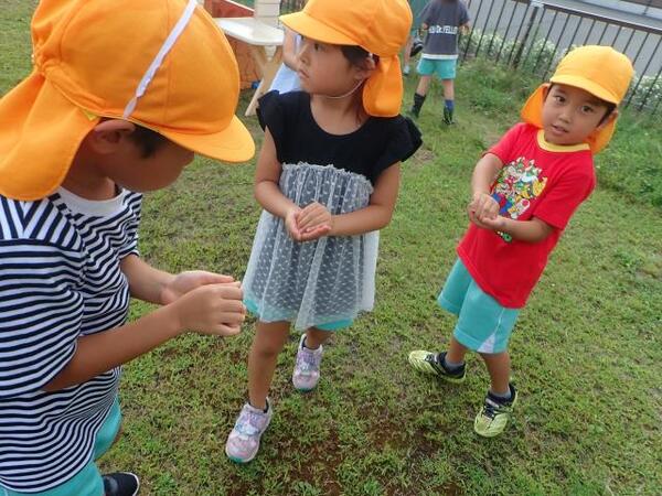 小さなバケツを片手に、シロツメクサの咲く園庭へ。お花を上手に摘んではバケツに入れて遊んでいました。夢中になっている姿がとってもかわいい子どもたちでした!楽しかったですね♪