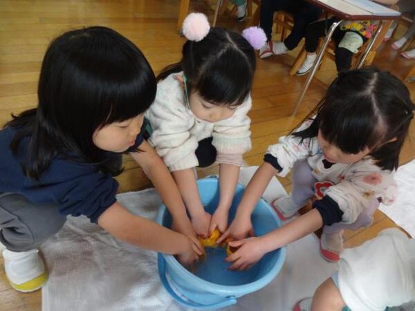 ゆり組親子対象の食育講座がありました。三条市食育推進室の栄養士さんにご指導いただきながら、親子で調理体験を行いました。野菜の皮を剥いたり、包丁で切ったり…子どもたちもとっても真剣な表情で取り組んでいました。調理体験を通して、食への関心がより広がったのではないでしょうか。保護者対象の食育講話では「おいしく食べる ゆたかに生きる」をテーマに管理栄養士さんよりお話をしていただいました。ご参加くださりありがとうございました。