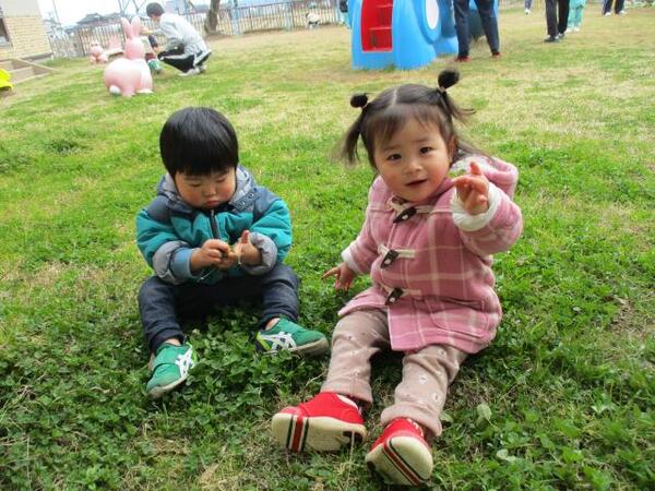 三角マットや鉄棒など、体を動かして遊びました。手や足の力がついてきて、ぎゅっと握ったり、よじ登ったり…とっても楽しそうに遊んでいました♪