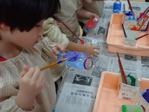 もうすぐ七夕!七夕のお話を聞いて、星や宇宙に興味を持ったゆり組さん。みんなで、星の世界(プラネタリウム)を作ってみることにしました。いろいろな素材を使って「こうやったら、本物の星みたいだよ!」「いっぱい描いたらきれいなんじゃない?」と意欲的に作り進めています。「こうやって切ると星の形になるよ」「私にも教えて!」と、お友だち同士で教え合う姿も見られました。どんな世界ができるでしょうか?完成が楽しみですね!!