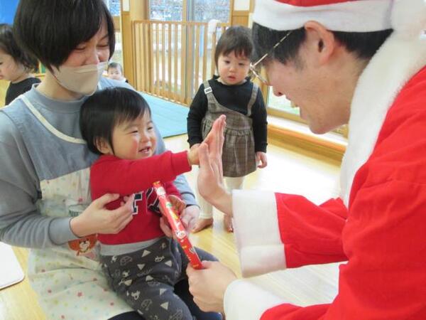 風が強く戸外には出られませんでしたが、園内を散策しながらたくさん遊びました!遊戯室でよ〜いどん!!と走ったり、保育室の楽しい遊具で遊んだり…たくさん遊んでおなかもペコペコ!お待ちかねの、嬉しいお弁当タイムです。お家の方の愛情がたっぷり詰まったお弁当。蓋を開くと「わぁ〜!」とニッコリ♪とってもいい笑顔を見せてくれました。パクパク、喜んで食べていました。ご準備ありがとうございました!!