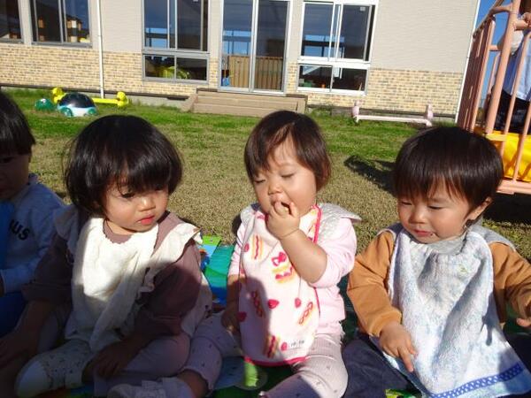 乳児棟の、もも・たんぽぽ組のお友だち。新入園のお友だちが多く、不安でいっぱいの様子もありましたが、少しずつ安心した表情を見せてくれることが増えてきました。今日は、保育室からすぐの園庭で遊びました。歩き始めたばかりのお友だちも、てくてく…と芝生の上を歩いてみては、にっこり顔。砂遊びに興味津々で自分から手を伸ばす様子も見られました。ポカポカ暖かい日差しの下、ゆったりと遊ぶことができました♪