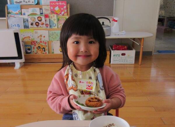 み〜んなで手をつないで、丸くなって「フーフー」と息を吹きながら広がったら…大きなふうせんに変身!赤色ふうせん、黄色ふうせん…虹色ふうせんもできました。ところが蜂さんになった保育者がやってきて…「ブ〜ン、チクッ!!」すると、みんなが「バ〜ン!!」とはじけて大笑い!とっても楽しそうでした!!みんなで一緒に遊んぶと楽しいですね♪