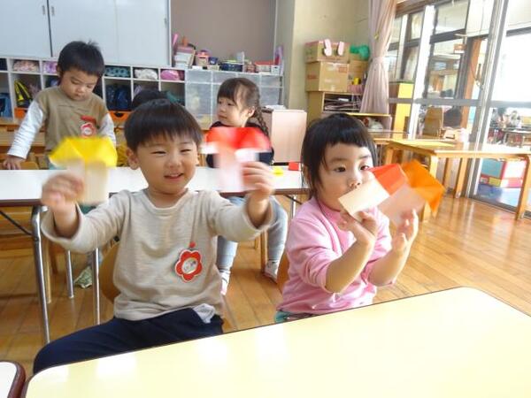 クラス対抗玉入れ合戦!!「がんばるぞー、おー!!」と元気いっぱいに掛け声をかけて、いざ勝負!「やったー!勝ったぞ!」「悔しい〜、もう一回したい!」と大盛り上がりでした。勝ったり負けたり…結果は、『引き分け』でした。みんなで遊んで楽しかったですね♪
