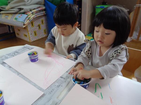 園庭に出て遊びました!砂を掘り掘り、ぶらんこブラブラ…お兄さんお姉さんの真似をして遊ぶ姿も見られました。ぽかぽか暖かい気候の中、たくさん遊んで満足そうな子どもたちでした。楽しかったですね♪