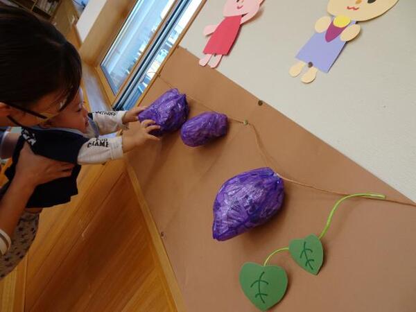 三角のマットに“よいしょ”と登ってみると…足が届かなくてちょっぴりドキドキ…。だんだん上手にバランスを取れるようになってきて、手を放して笑顔を見せてくれる子も!遊びの様子に成長を感じます。これからもたくさん遊びましょうね♪