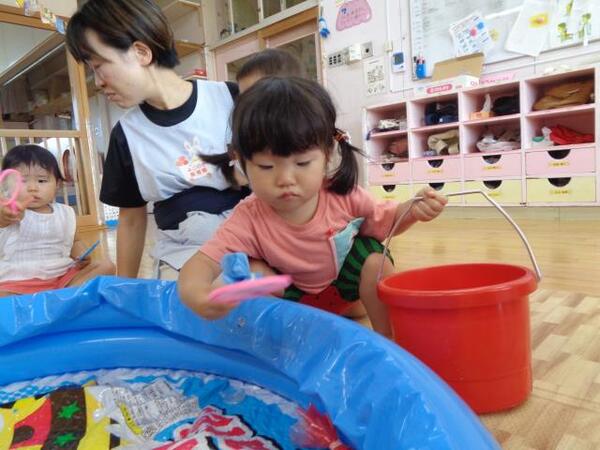 遊戯室で遊びました。「よ〜いどん!」でケンケン競争!うまく進めたかな? 太鼓橋をよじ登ったり、ロディで跳びはねて遊んだり…たくさん体を動かして遊んで、満足そうな子どもたちでした!楽しかったですね♪
