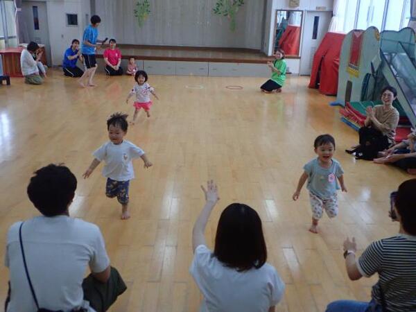 手の平に絵の具をつけて、ペッタン!手の形が写ると、にっこり嬉しそうな笑顔を見せてくれました。子どもたちの手形が…とっても鶴と亀になりました♪