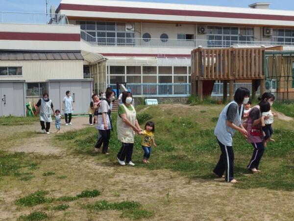 農道に散歩に行ってきました。保育者やお友だちと手をつないで上手に歩いていました。手作りのお散歩バックにエノコログサやイヌタデなどの草花を摘んで入れたり、石ころをいくつも入れたり…物を入れて遊ぶことが楽しい時期。とっても喜んで遊んでいました!楽しかったですね♪