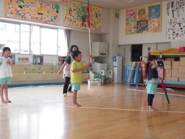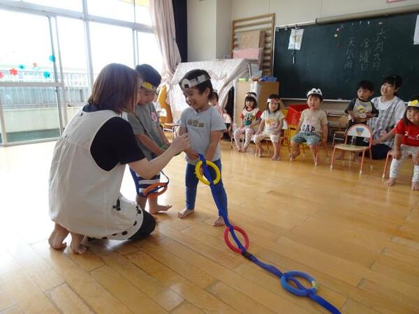 ジャ〜ンプ!が上手になってきました。小さな段差をジャンプすることがとっても楽しいようです。と〜っても高く跳んでいる“つもり”の子どもたち。巧技台を用意すると「じゃんぷぅ」と言いながら、ピョンと飛び降りて、満足そうな得意顔。そんな姿がとってもかわいい子どもたちでした♪