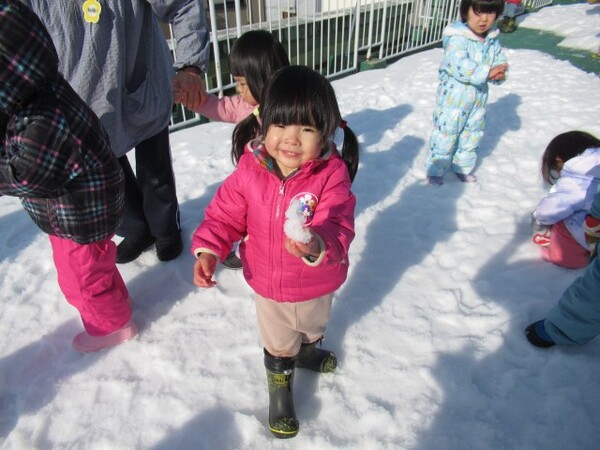 一枚のタオルがふわふわうさぎさんに変身!手を伸ばして喜んでいました。タオルを丸めたタオルボールもお気に入り!拾ったり、投げたり…楽しそうな子どもたちでした♪