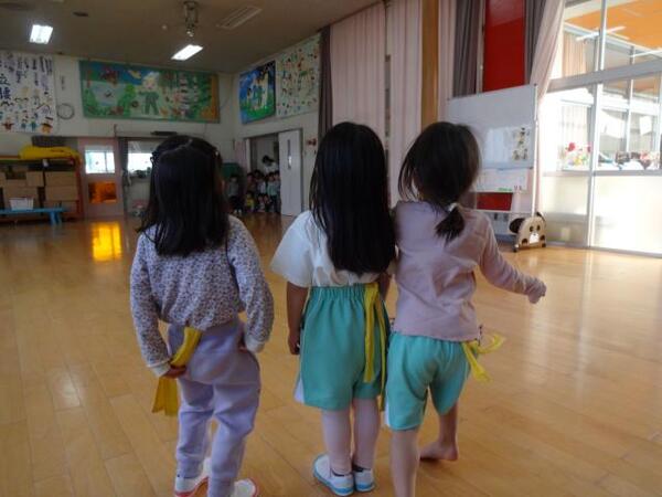三条食育推進室の栄養士さんより箸の持ち方の指導をしていただきました。全身を使ってバランス遊びをしたり、実際にスポンジや消しゴムを箸でつまんだりして遊びました。栄養士さんから「以前よりも持ち方が上手になっていますね」と言っていただきました。箸の正しい持ち方が身につくように、ご家庭とともに見守っていきたいですね。