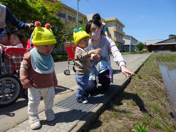 近くの田んぼに稲刈りの様子を見に行ってきました。コンバインを見つけて「あ!あ!」と声を出したり、指さしたり…。田んぼの近くにはちょうちょもたくさんいて、喜んで見ていました。涼しい風も吹いてきて、季節の変化を間近に感じることができました。楽しかったですね♪