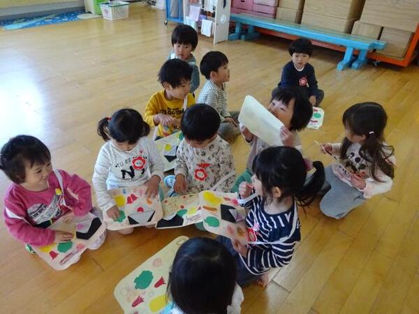 お店屋さんとお客さん役を交代しながら、とっても楽しそうに遊んでいました。喜んでもらえることの嬉しさも味わえたようです。