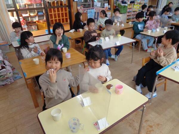 ゆり組さんは、園長先生から「みんなのためにプラネタリウムを作ってくれてありがとう」と『七夕模様の懐紙』をいただき、おやつの時に使用しました。嬉しさと美味しさで、にこにこ笑顔があふれていました♪
