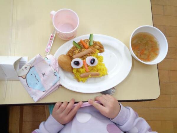 畑の野菜がどんどん大きくなって、ナスとキュウリを収穫しました。キュウリは、「親指くらいだな〜」と観察していたところとは別のところに、知らないうちに育っていたようで「うわぁ〜!!大き〜い!」とみんなビックリ!!「どんな味がするんだろう?」と興味津々な様子でした。ナスもキュウリも、給食にに添えてもらってとても喜んで食べていました♪