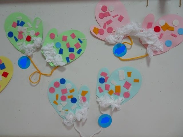 「赤がいい!」「ぼく、青〜」と自分で色を選んで“トントン”とスタンプ遊び。色も混ざって、素敵な模様の羽根ができました!目や口はシールをペッタン。「できたよ〜」「見てみて!」と、パタパタ羽根を動かしながら見せてくれました。とってもかわいいちょうちょができましたね♪