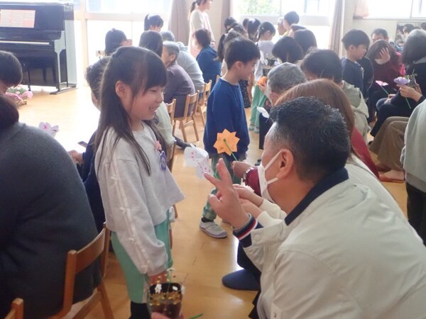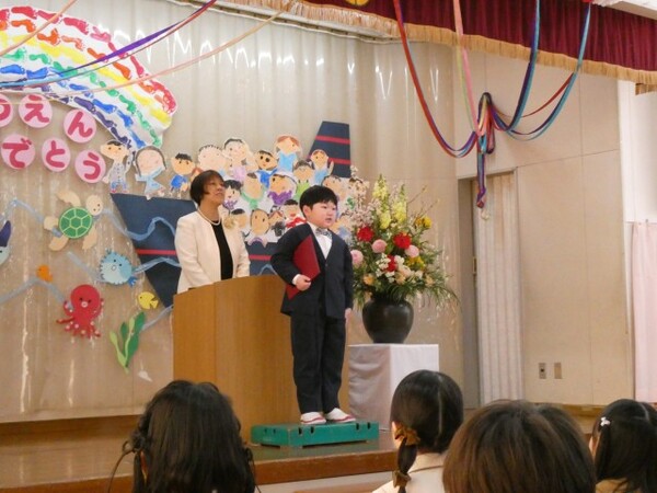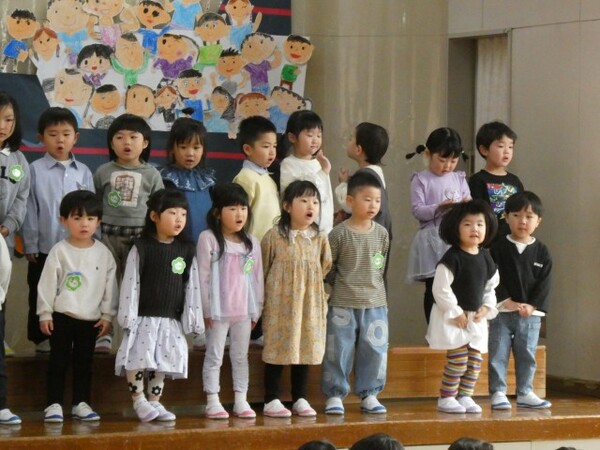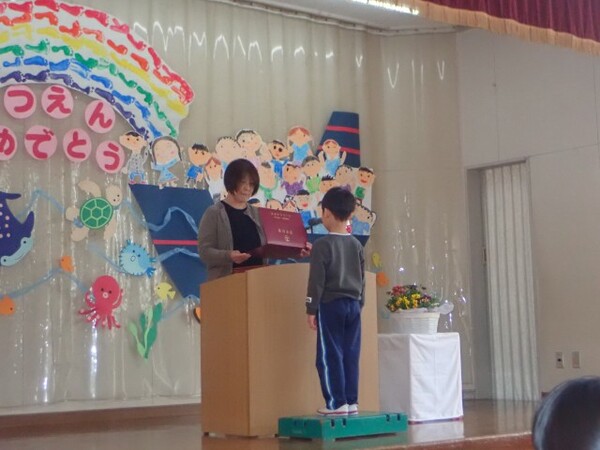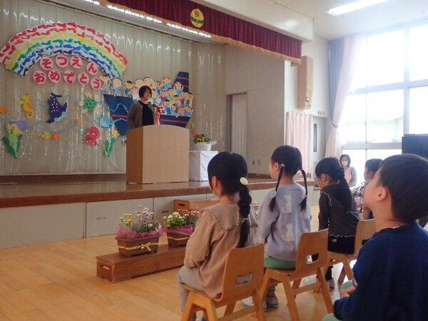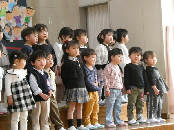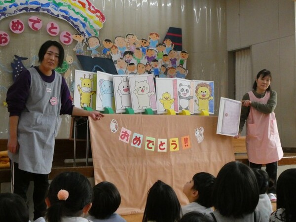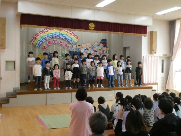 さくら、ばら組のお友だちもゆり組さんをお祝いしました。「ゆり組さん卒園おめでとう!」「いっぱい遊んでくれてありがとう!」みんなの笑顔があふれていました。職員方のお祝いでは、玉手箱から手を繋いだゆり組さんが!!ふじの木保育園の宝物ですね!最後はゆり組さんがお礼の歌を歌ってくれました。とてもすてきな歌声でしたね。